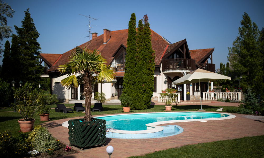 Hangulatos, a környezetbe jól illő, a vendégek által közkedvelt úszómedence a két épület között, a játszótér és az étterem terasza szomszédságában található. Gyermekek is nagy élvezettel használják.