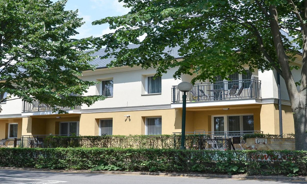 A Média Panzió és Apartmanház a fürdőkomplexumtól 450 méterre, összesen 26 férőhellyel, új, igényesen kialakított 2-3-4-5 ágyas apartmanokkal és 2-3 ágyas szobákkal várja a pihenni vágyó vendégeket.