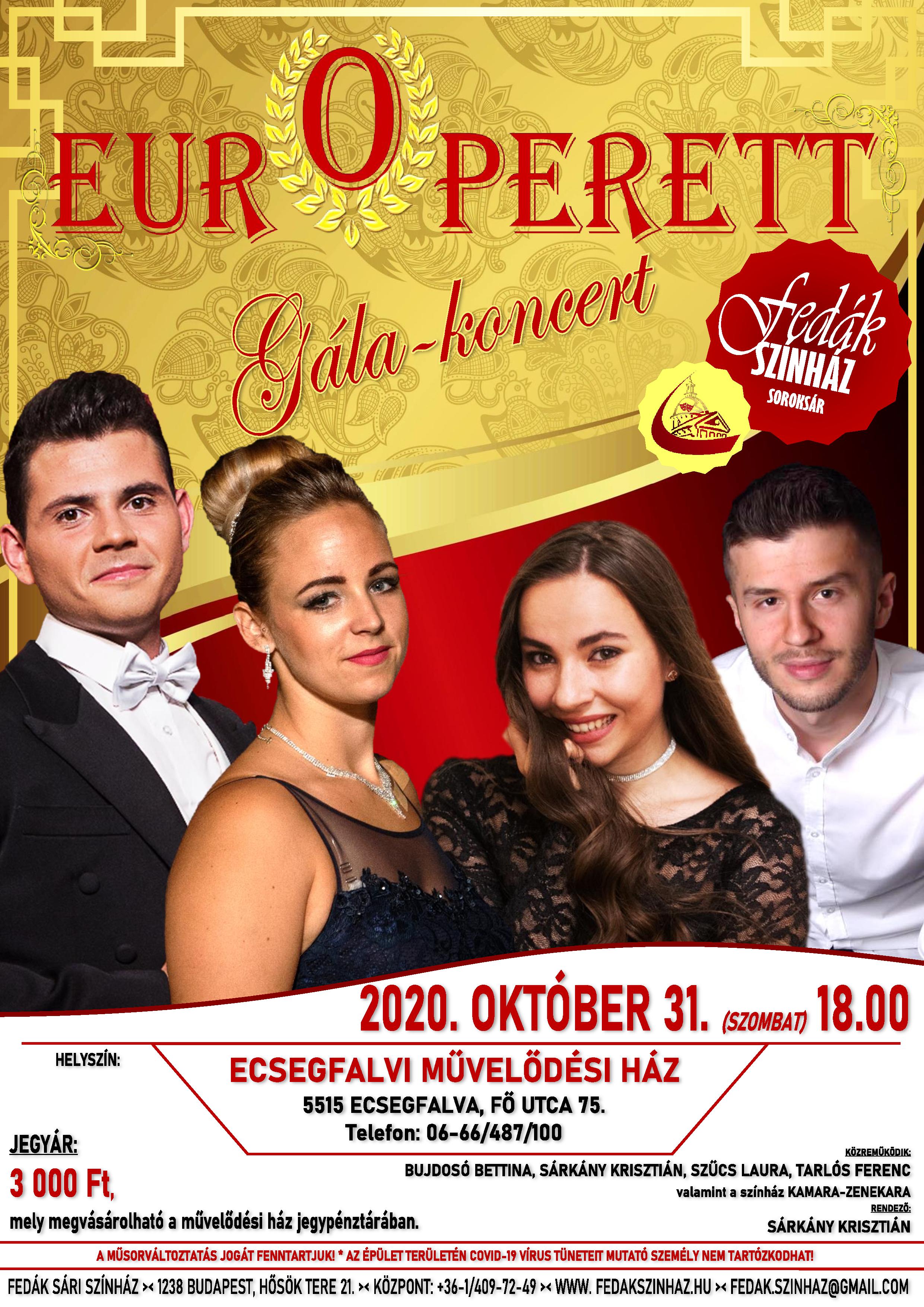 "EUROPERETT Gála Koncert" - utazó produkciók 2020. október